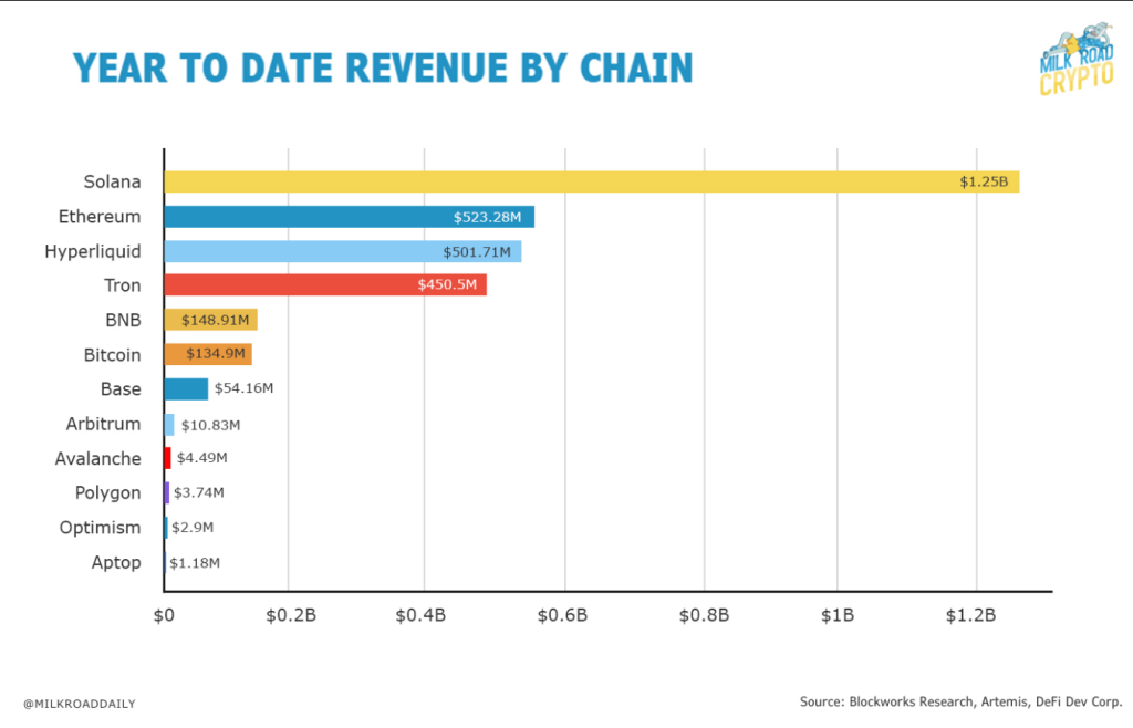 In keeping with knowledge shared by crypto media shops, Solana has generated $1.25 billion in income year-to-date. That’s about two and a half instances the income of Ethereum, which sits at $523 million to date this 12 months.