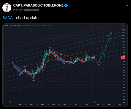 Elliott Wave practitioner CaptToblerone shared a state of affairs on X. He argued the decline match a corrective leg inside a bigger impulsive advance.