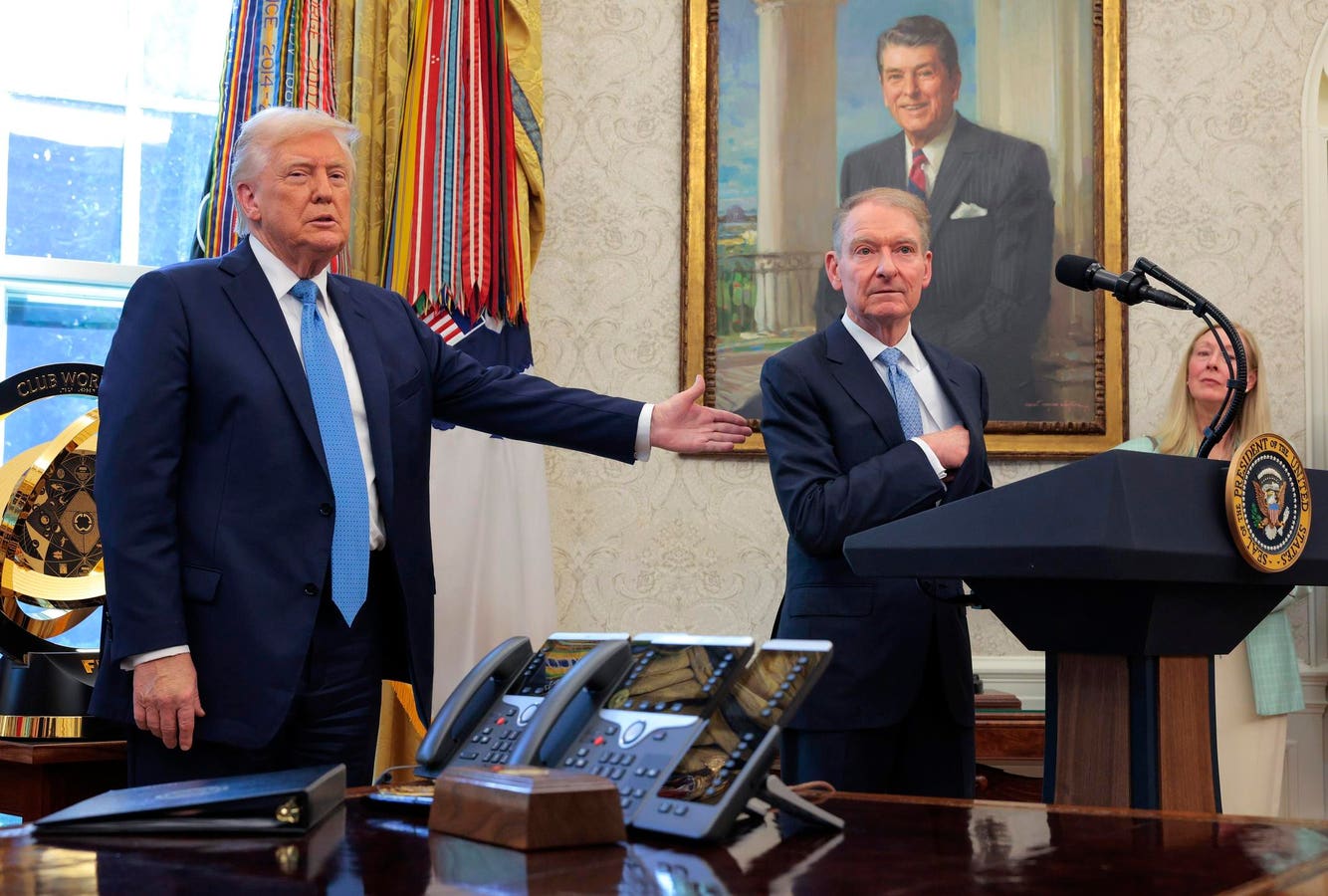 U.S. President Donald Trump congratulates SEC Chair Paul Atkins throughout his swearing-in on the White Home on April 22, 2025. In outlining his “innovation exemption,” Atkins stated new tokenized property might fulfill securities legal guidelines by means of principles-based situations — together with “verified pool” performance and adherence to requirements with built-in compliance options equivalent to ERC-3643. Picture by Chip Somodevilla/Getty Pictures