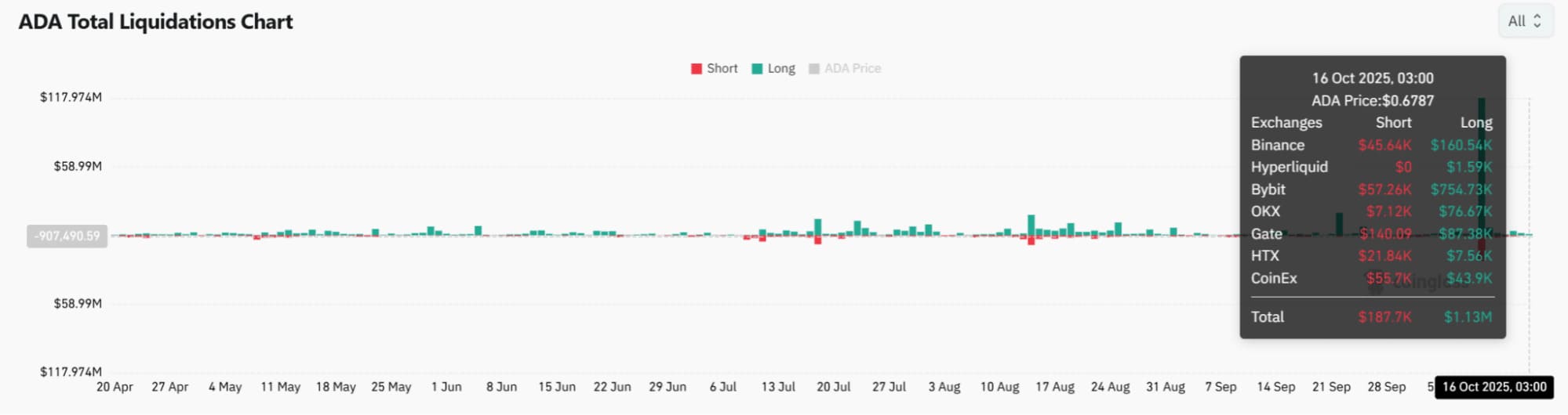 Liquidation knowledge helps the texture, greater than $1 million in lengthy positions have been erased, as opposed to some brief closures. If consumers can defend $0.65, ADA could transfer again up in the direction of $0.73 and even $0.87. Nonetheless, a break beneath that help can take it nearer to $0.53, the place consumers sometimes come again.