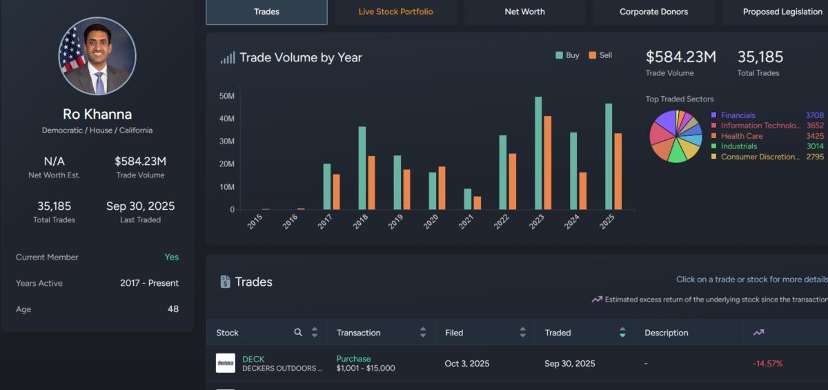 In accordance to information from Quiver Quant, Khanna himself has notched up $80.3 million value of stock commerce quantity in 2025.