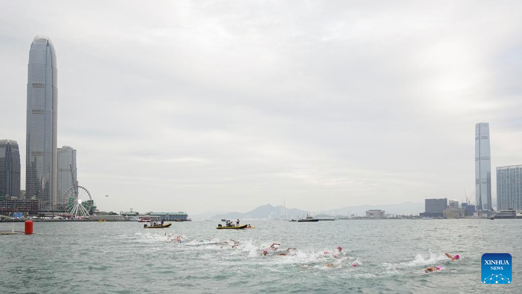 Athletes compete in the course of the girls’s individual triathlon at China’s 15th National Video games in Hong Kong, south China, Nov. 15, 2025. (Xinhua/Lui Sui Wai)