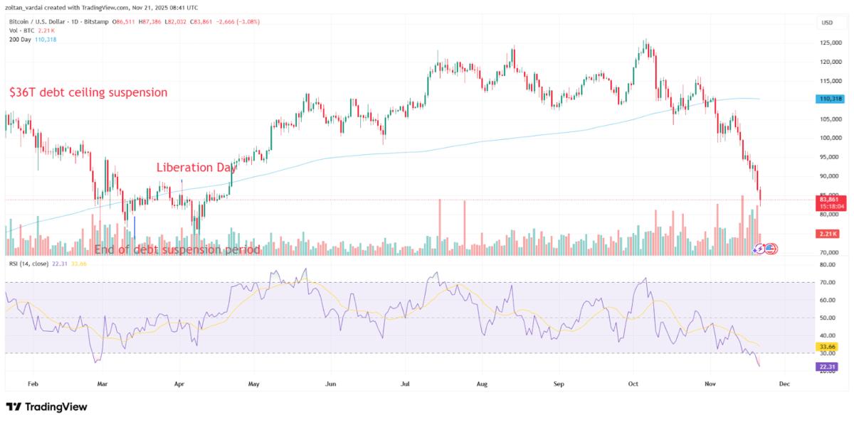 Elsewhere, Bitcoin BTCUSD sank to a six-month low of $82,000 on Friday, a degree final seen in April when the markets had been recovering from US President Donald Trump’s Liberation Day tariff announcement, TradingView knowledge exhibits.