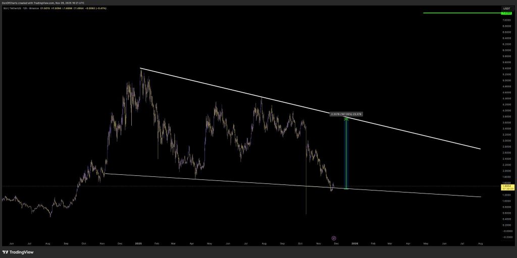 Quantity is beginning to return as effectively, and Don’s chart reveals the bigger construction stays intact. The SUI price never broke its macro range. It’s nonetheless holding the similar high-timeframe base that has supported virtually each main rally all through the 12 months.