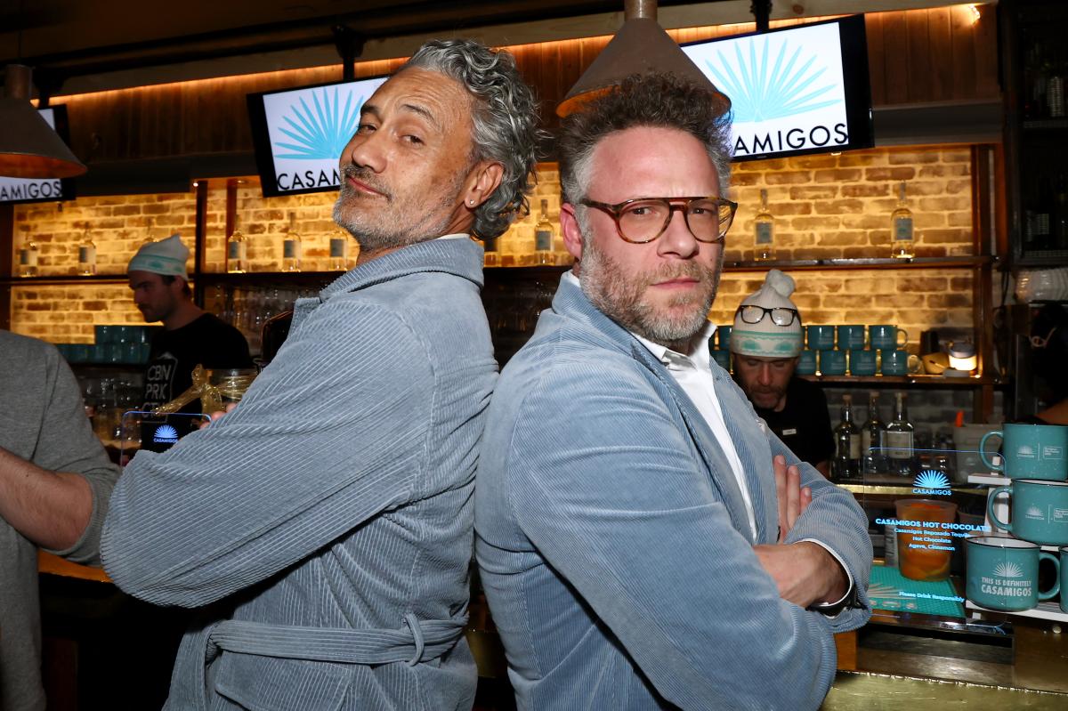 Taika Waititi — who’s at the competition premiering his long-awaited “Star Wars” venture poses with Seth Rogan. Getty Photos for Casamigos
