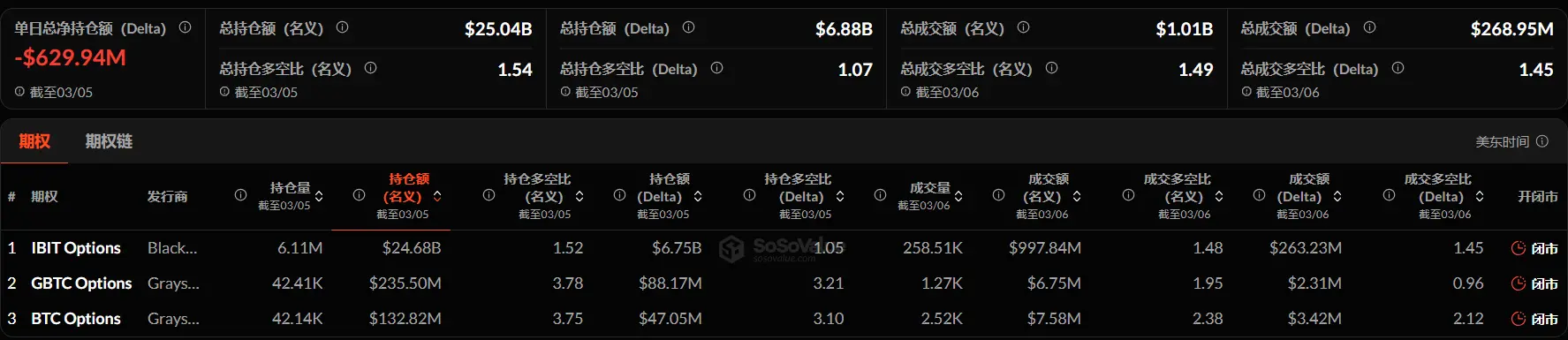 As of March 6, the whole notional quantity of U.S. Bitcoin spot ETF choices was $1.01 billion, with a complete notional long-to-short ratio of 1.49.