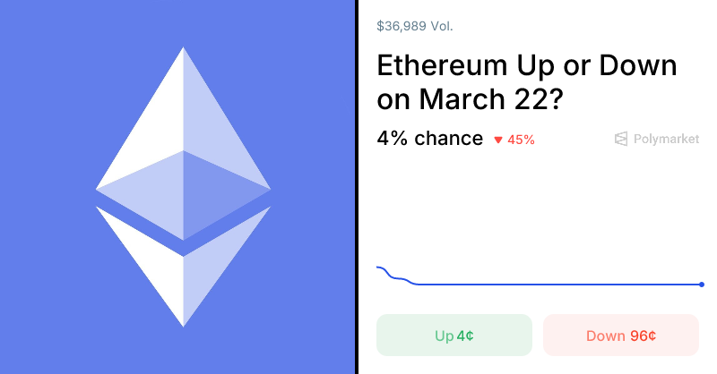This market will resolve to “Down” if the “Shut” value for the Binance 1 minute candle for ETH/USDT Mar 21 ’26 12:00 within the ET timezone (midday) is greater than the ultimate “Shut” value for the Mar 22 ’26 12:00 ET candle.