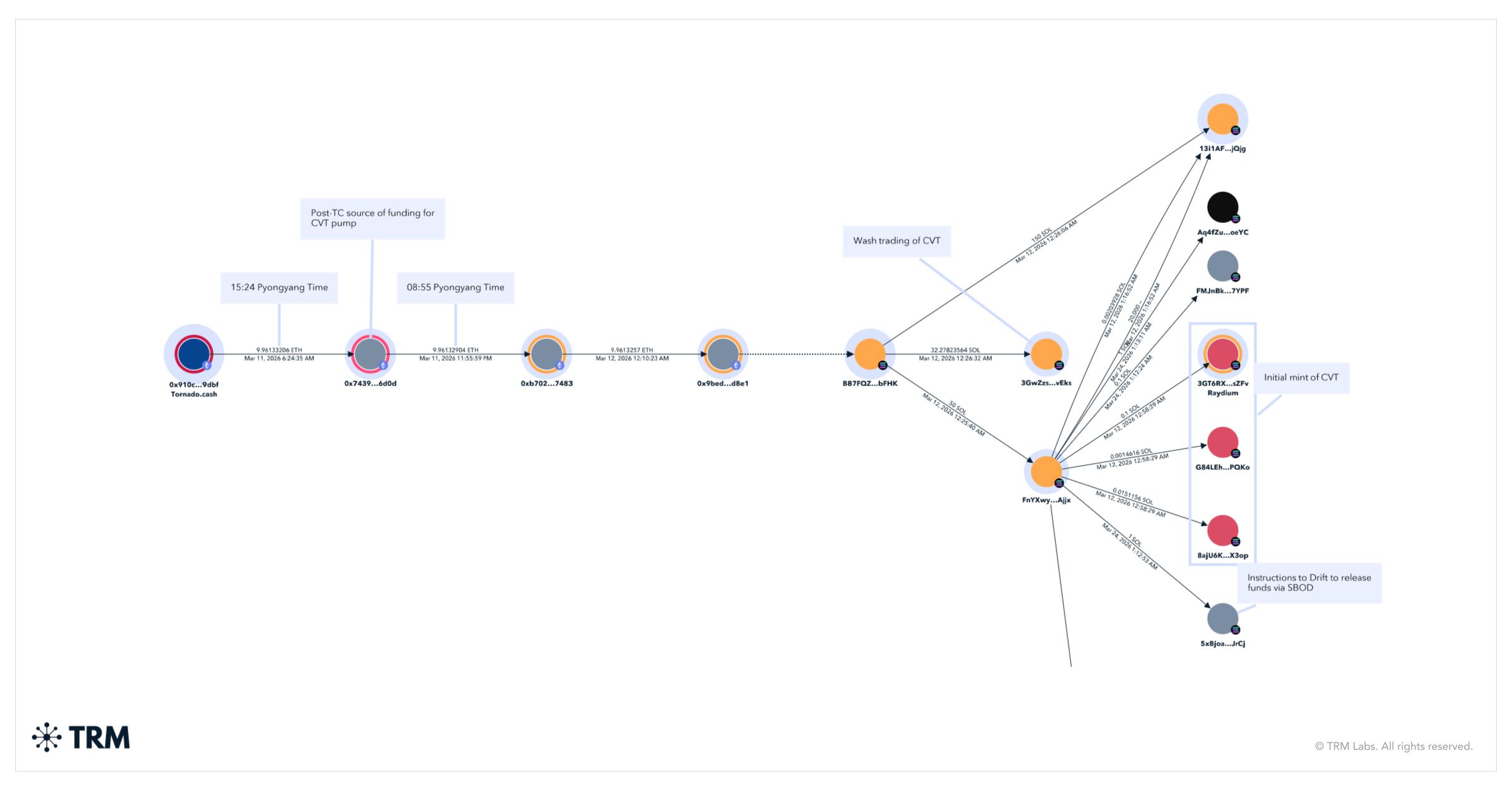 TRM Labs, which was the primary blockchain intelligence firm to cowl Solana, and has probably the most full protection of the blockchain right this moment, is actively monitoring the cross-chain funds motion and monitoring on-chain indicators associated to potential state actor involvement. Extra to come back as the image develops.