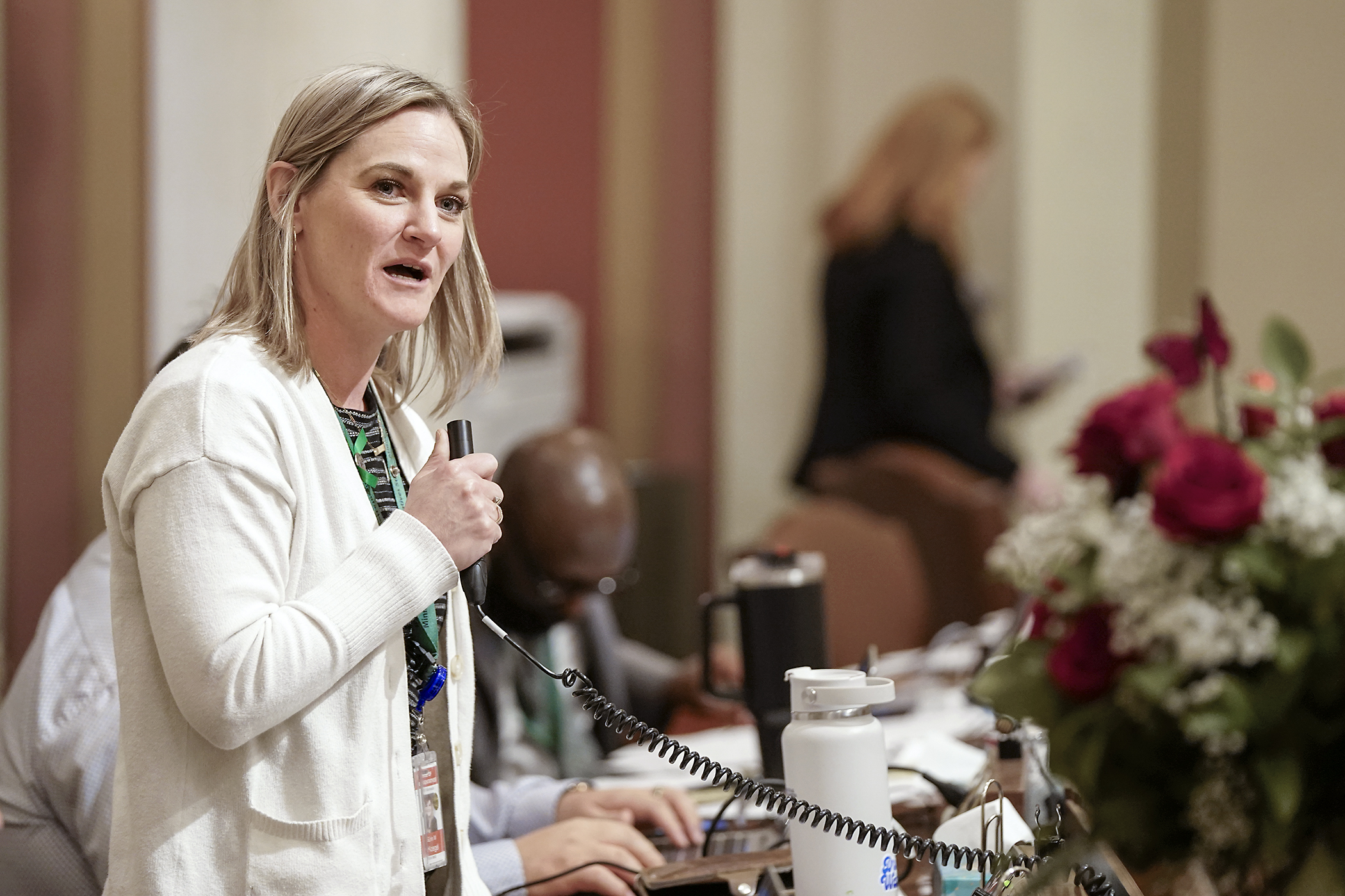 Rep. Erin Koegel presents HF4188 on the House Ground Thursday. The invoice, which might ban digital forex kiosks, was included within the omnibus commerce coverage invoice, which was handed 122-12. (Picture by Michele Jokinen)
